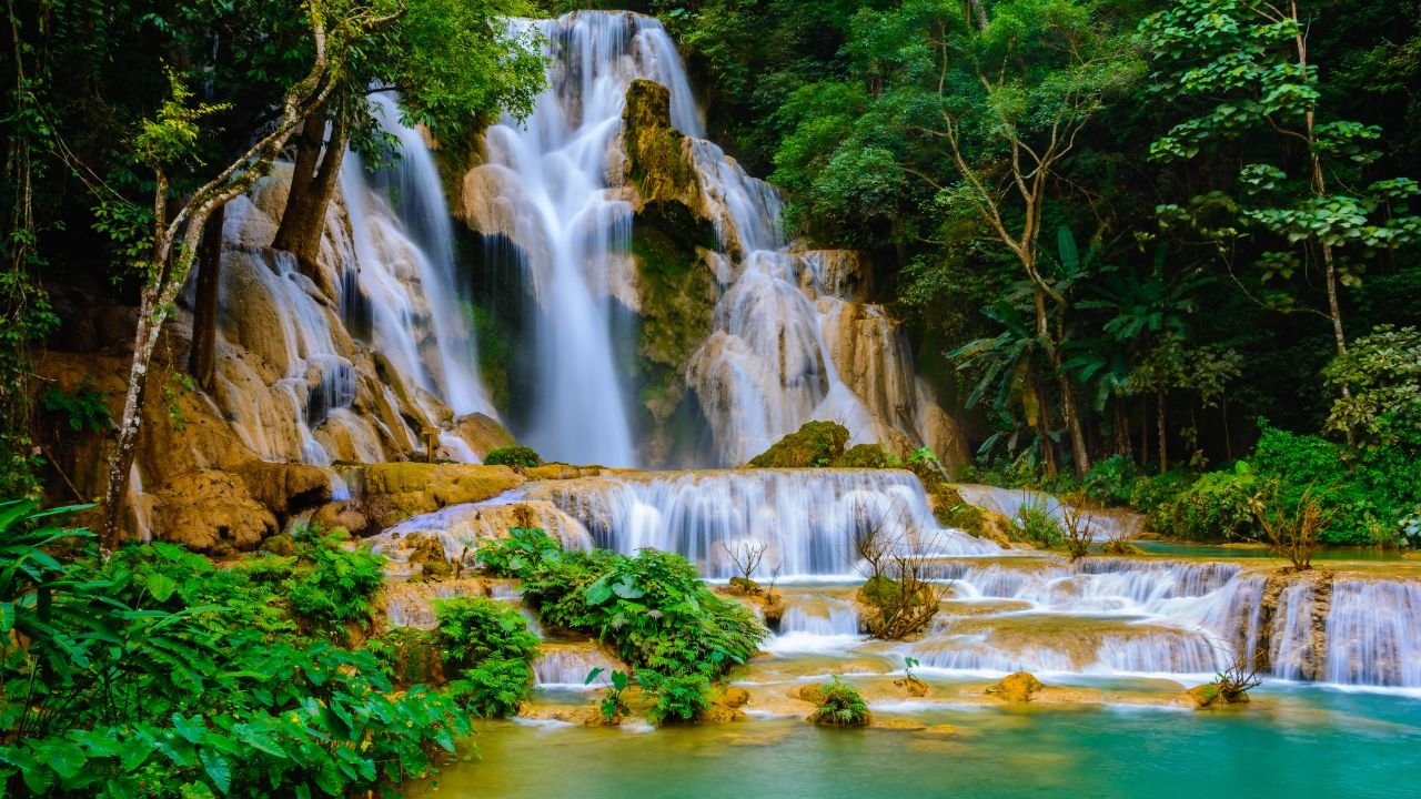 Near Luang Prabang in Laos, Kuang Si Falls creates a tropical paradise with its multi-tiered cascades and brilliant turquoise pools. The limestone formations create natural swimming areas at different levels, making this one of the few major waterfalls where you can actually take a refreshing dip.