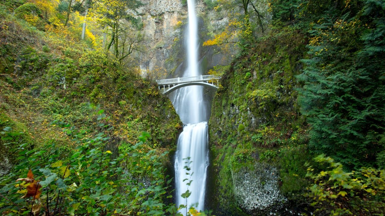 Oregon’s most visited natural attraction, Multnomah Falls is a two-tiered beauty that perfectly embodies the Pacific Northwest’s natural splendor. The iconic Benson Bridge spans the falls between the upper and lower sections, creating one of the most photographed waterfall scenes in America.
