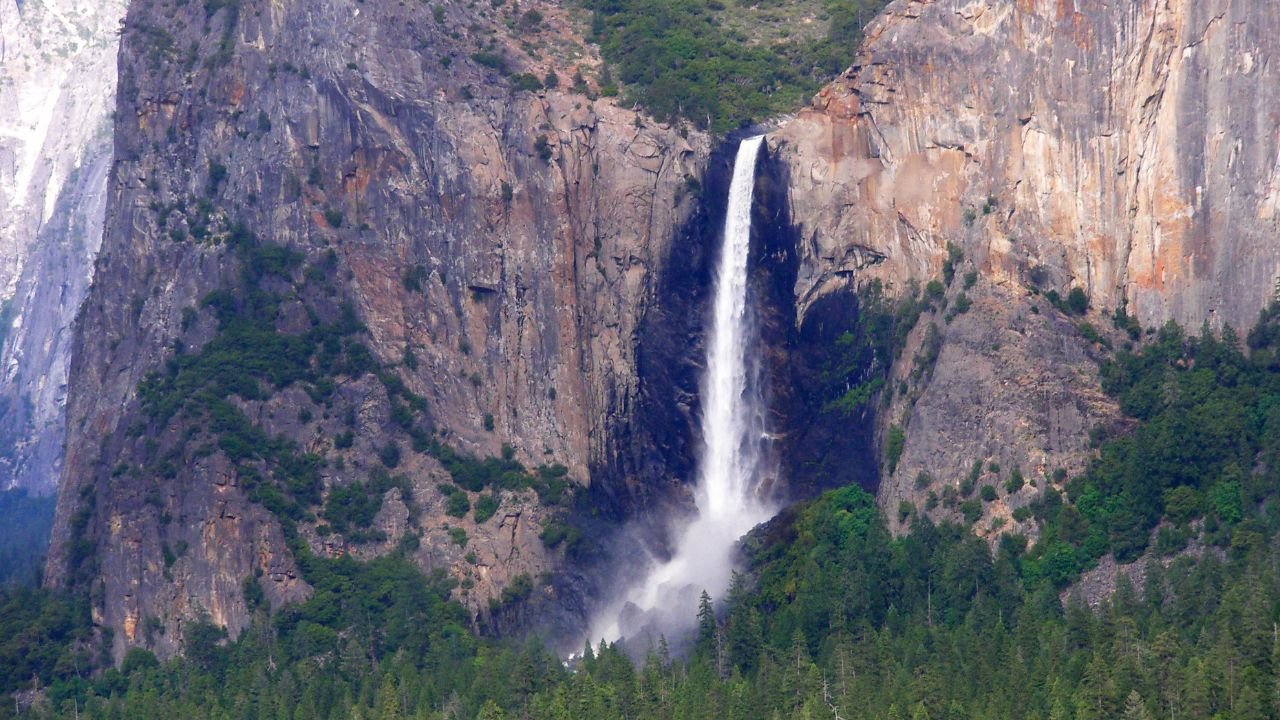 Bridalveil Fall in Yosemite National Park gets its name from the delicate, veil-like appearance of its free-falling water. Unlike Yosemite Falls, Bridalveil flows year-round, though it’s reduced to a whisper during late summer and fall.