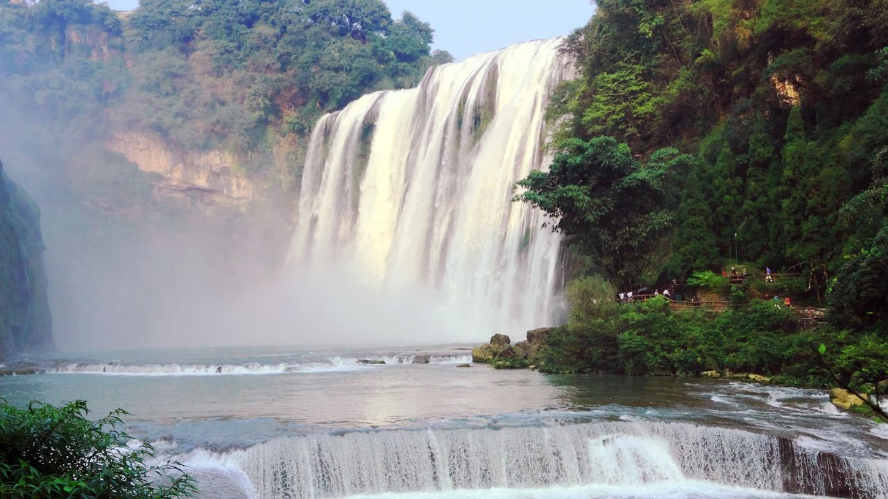 What makes Huangguoshu special is the viewing system – you can see the falls from six different angles, including from behind the water curtain via a natural cave system. During peak flow season, the thundering water creates a constant rainbow display.