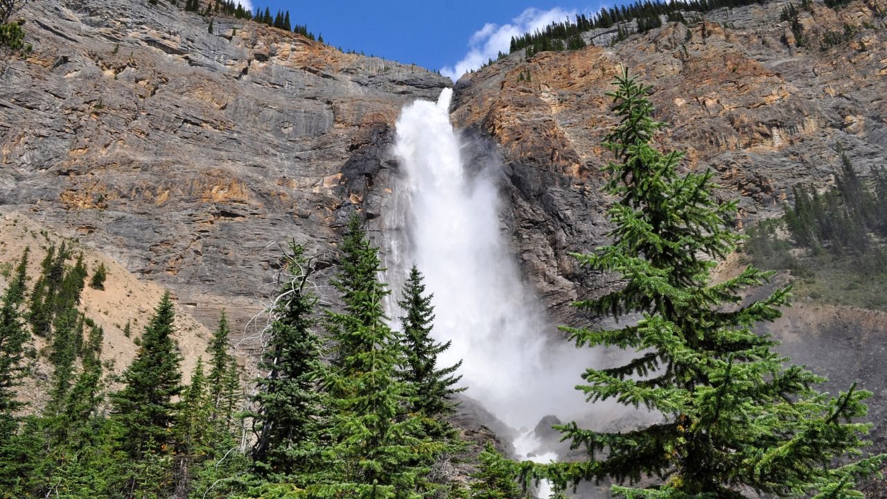 Takakkaw Falls in British Columbia’s Yoho National Park is Canada’s second-highest waterfall and one of the most spectacular sights in the Canadian Rockies. The Cree word “Takakkaw” means “it is magnificent,” and standing before this glacier-fed giant, you’ll understand why.